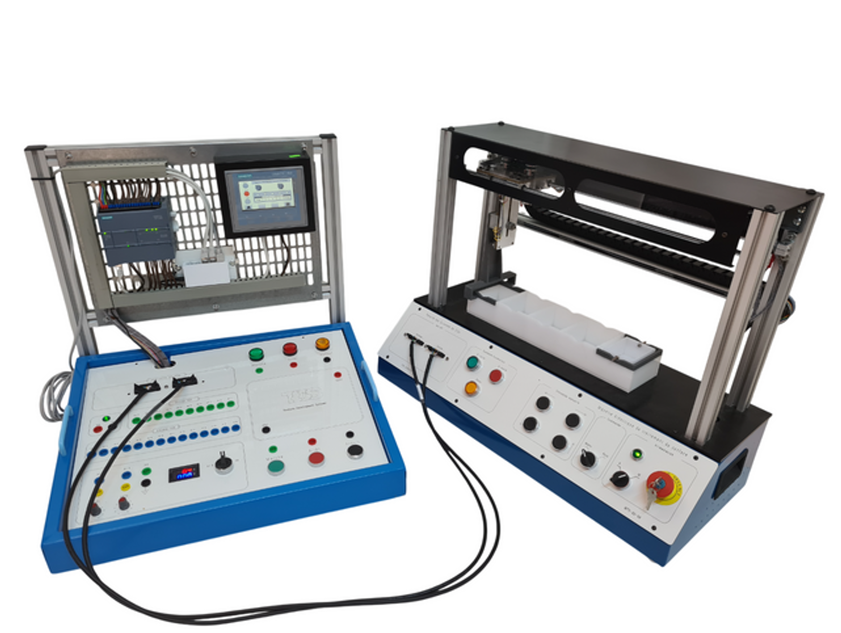 Simulateur complet pour la réalisation d’installations pneumatiques et électropneumatiques, pilotées par automate programmable.